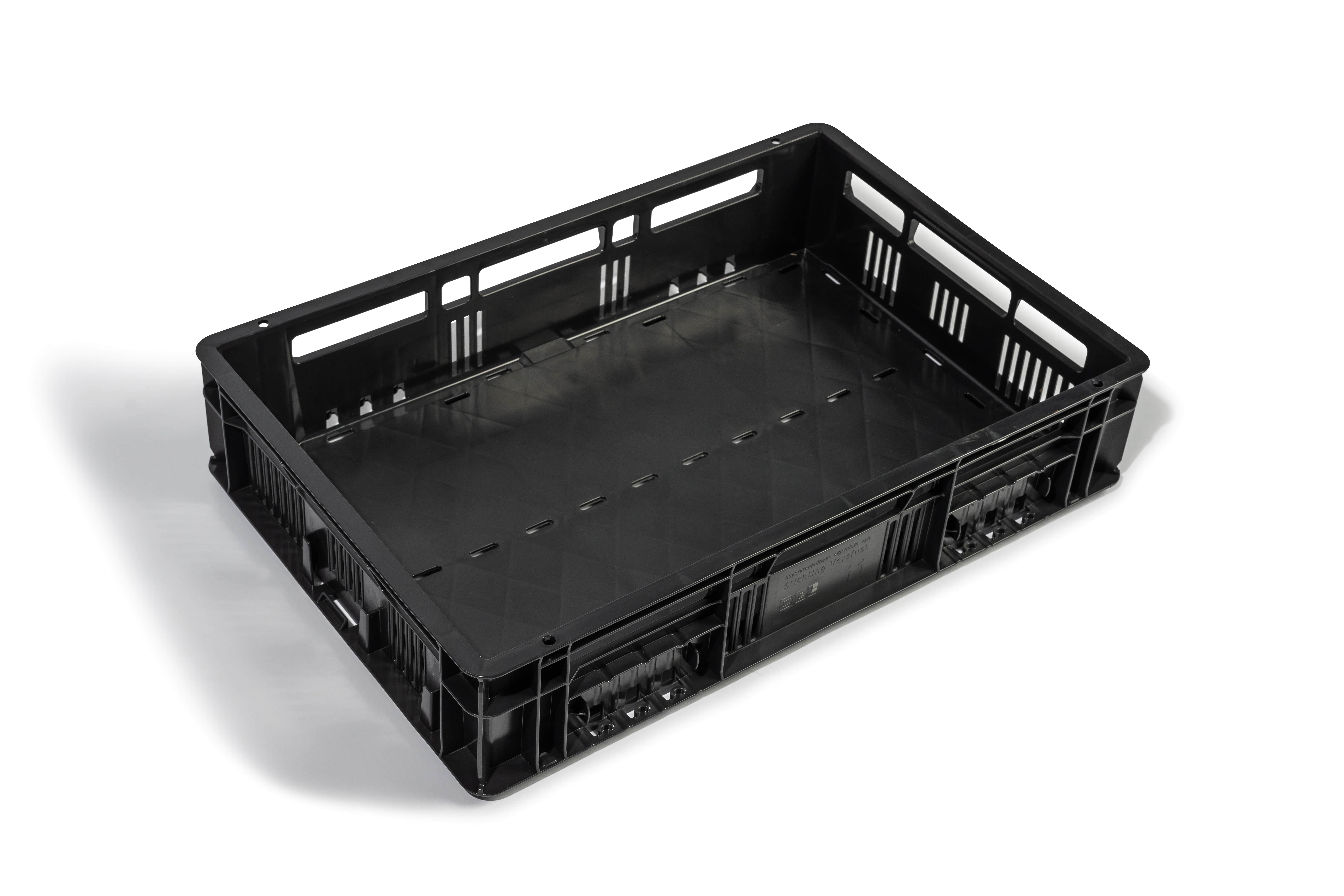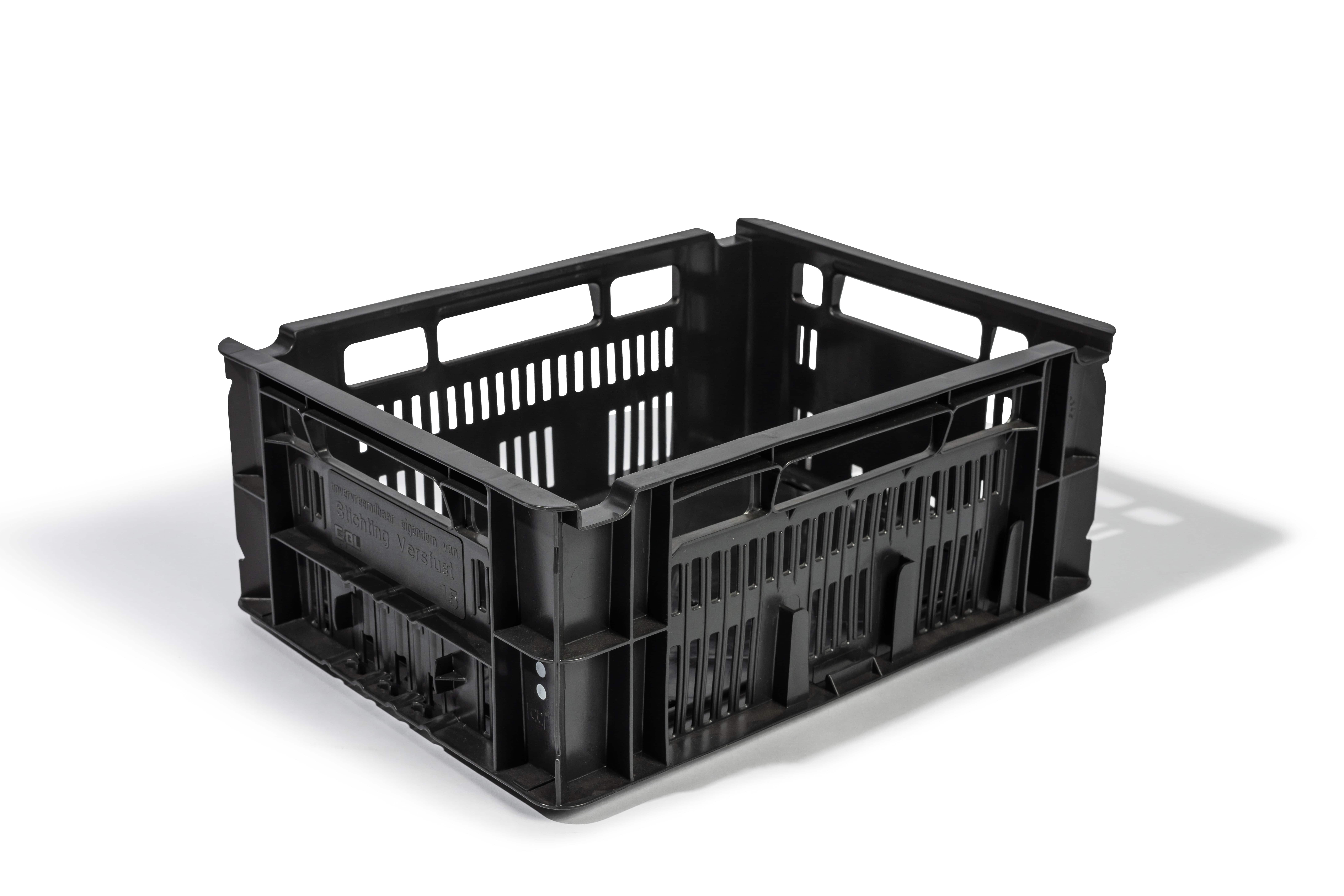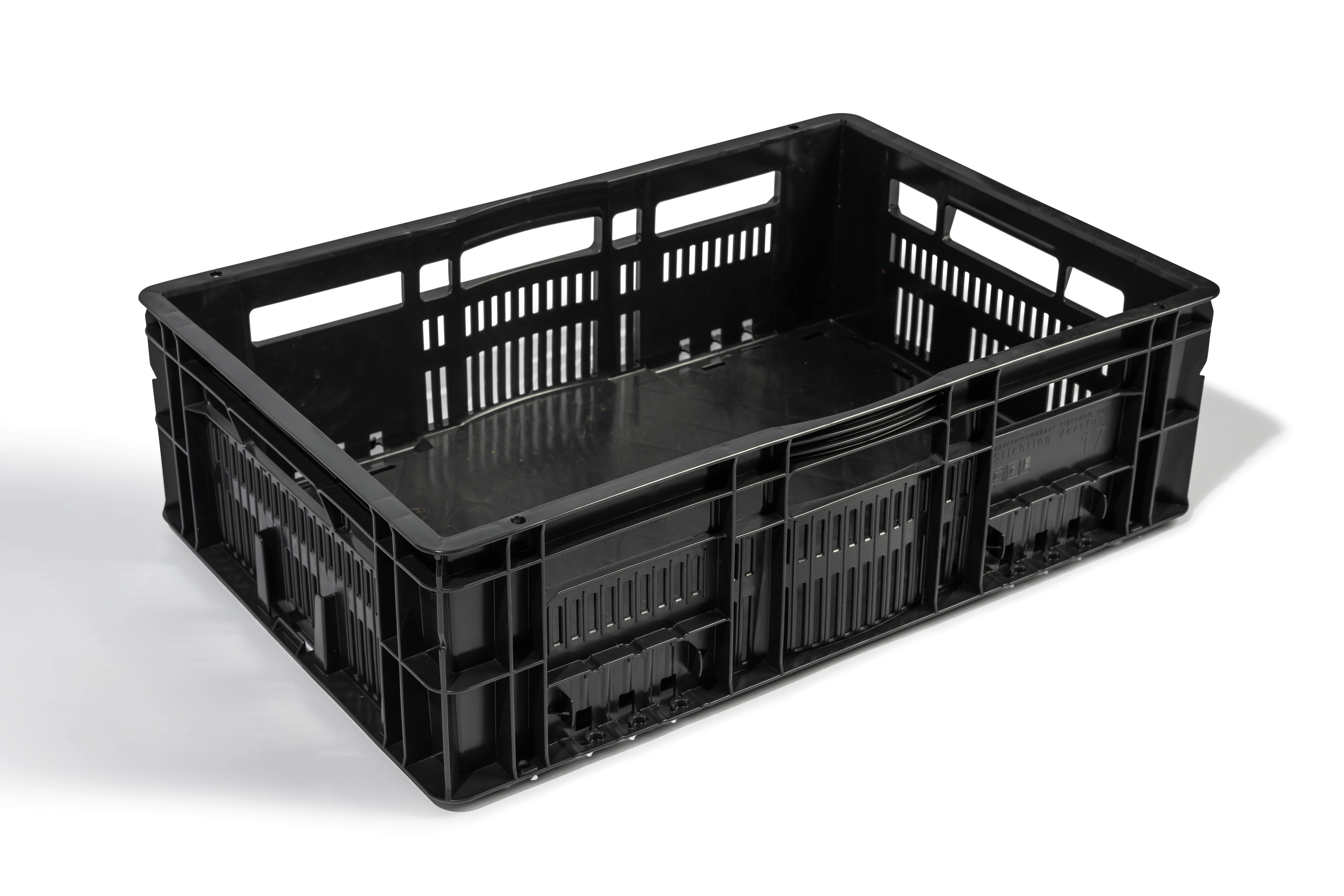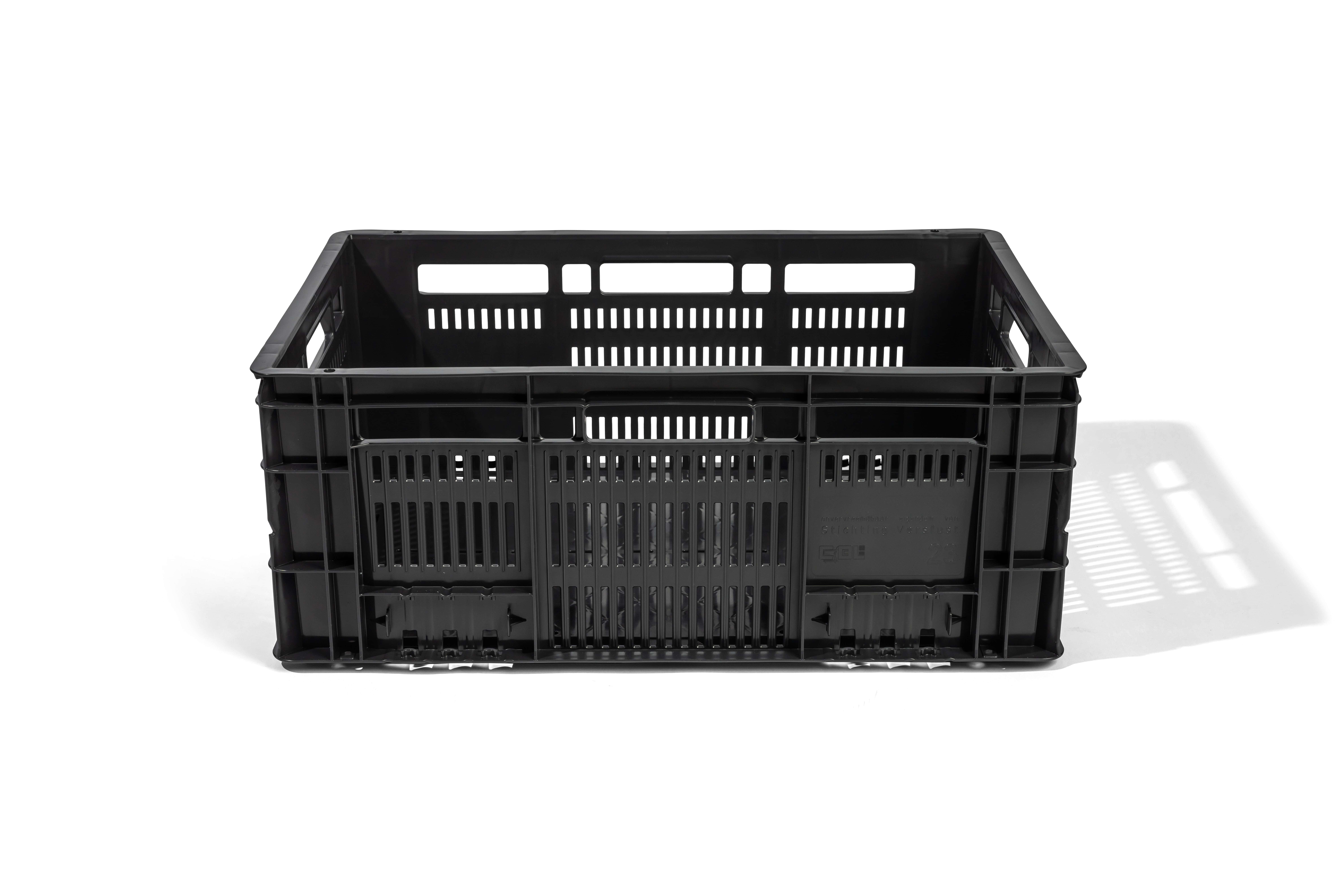 CBL crates are made from food-grade, high-density polyethylene, which is cadmium-free and fully recyclable. Broken crates are crushed to be used as regranulate for new crates. CBL crates are black and are available in six different sizes (types). See below for detailed product specifications per CBL type.
