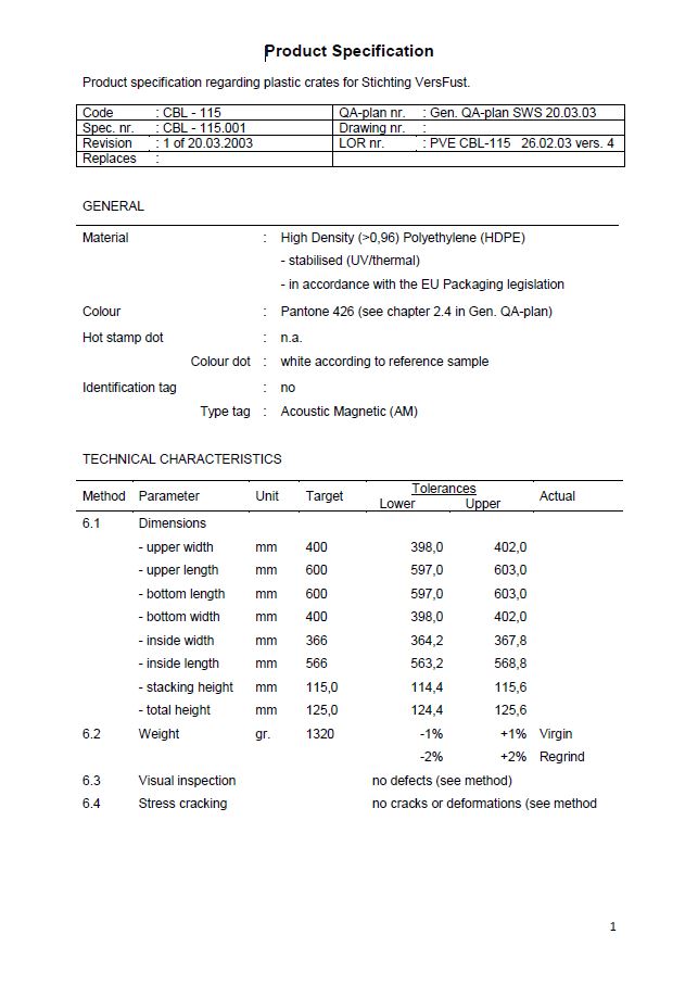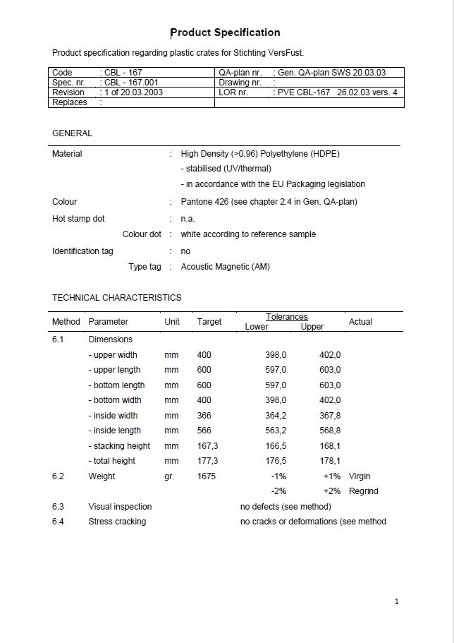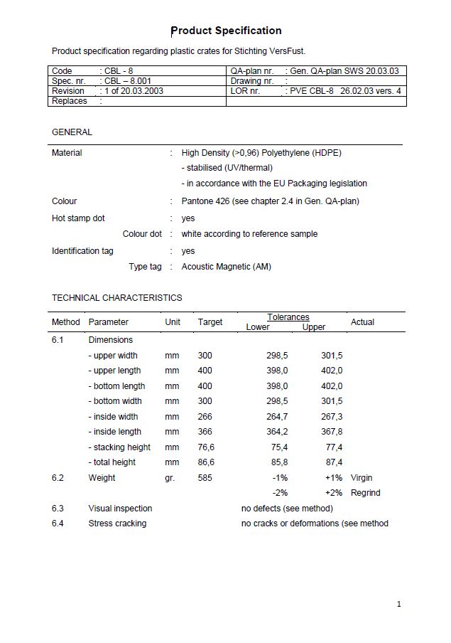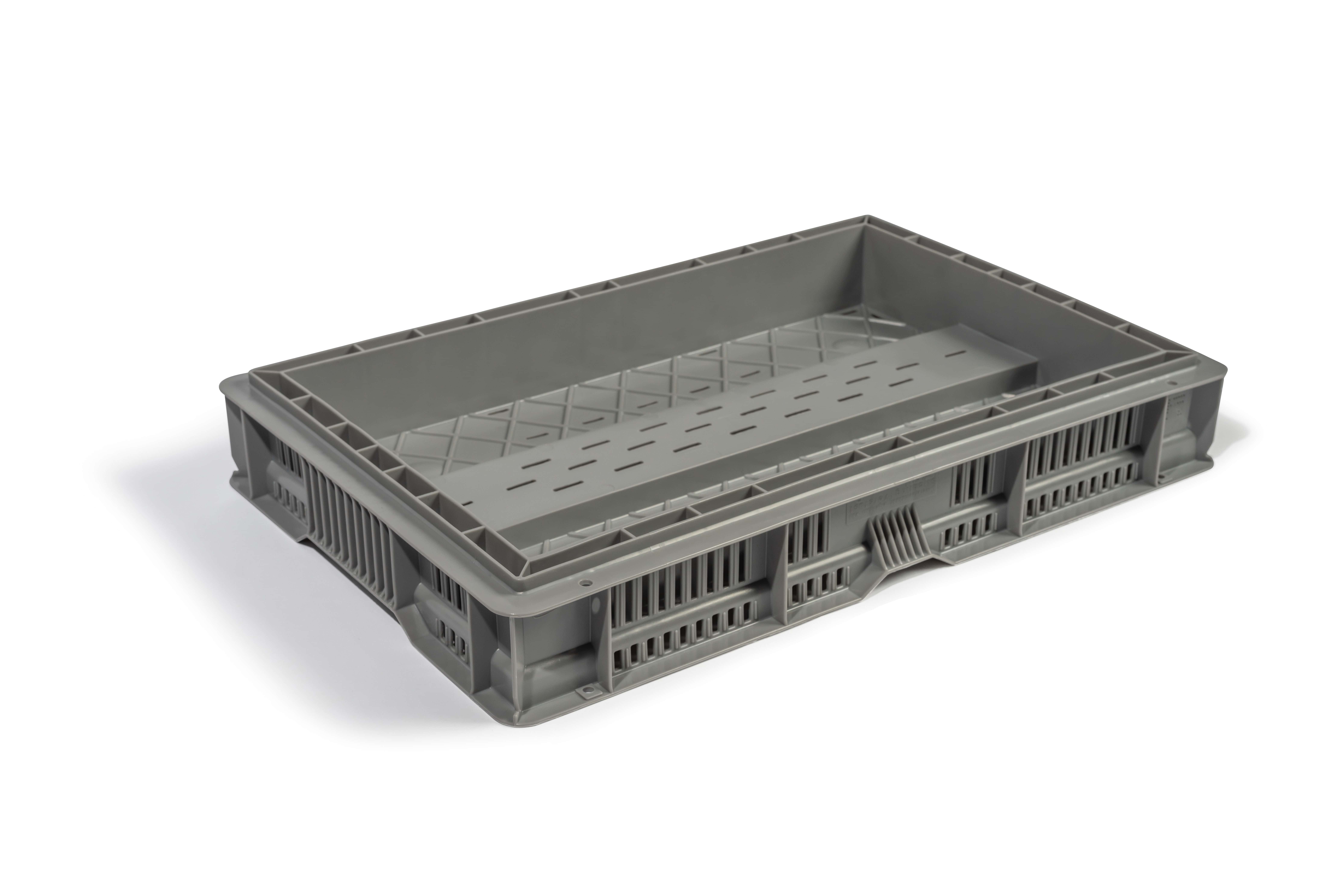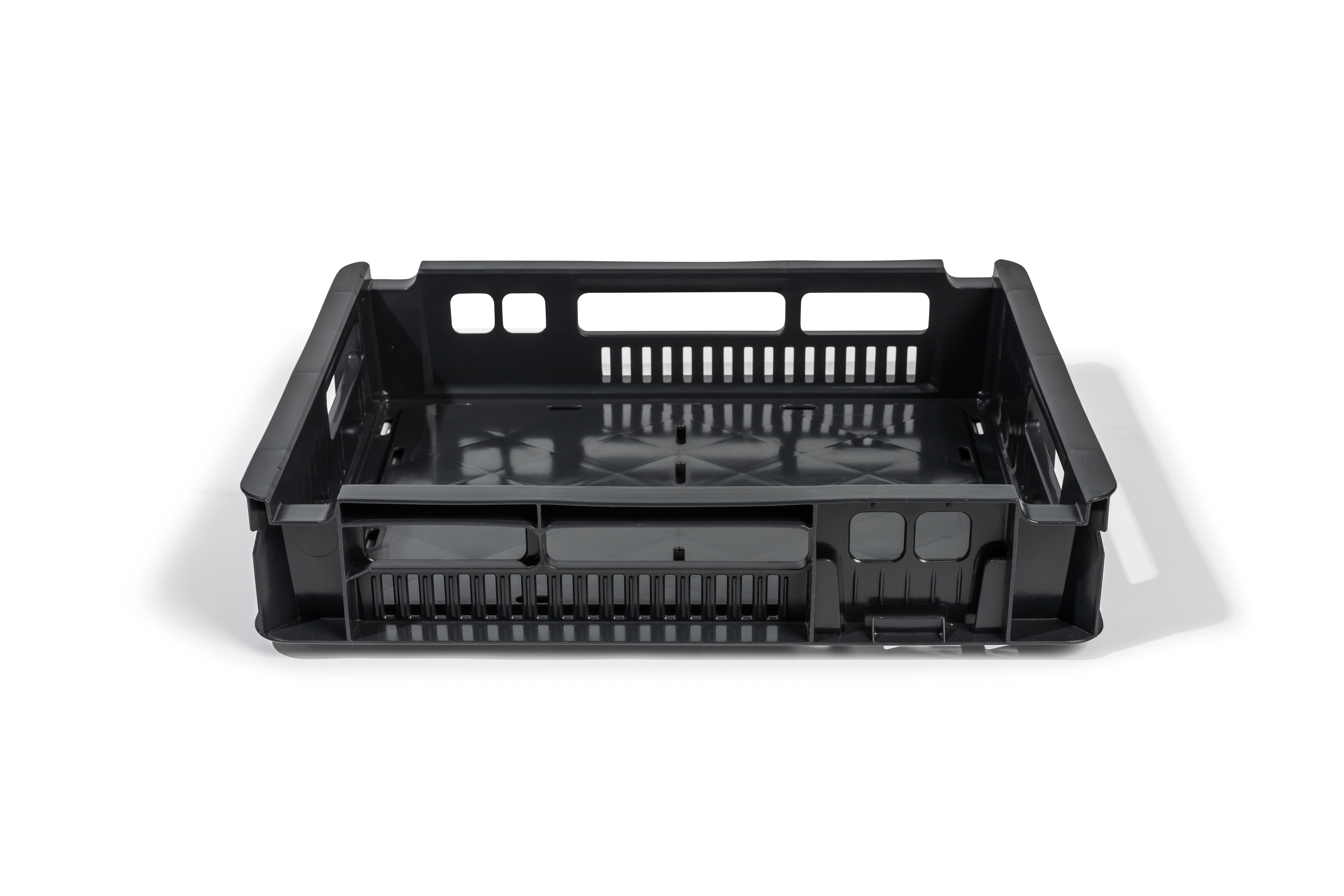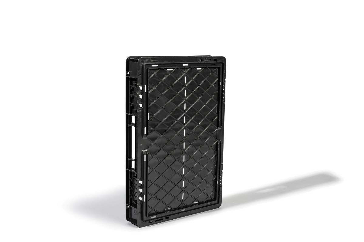 CBL crates are made from food-grade, high-density polyethylene, which is cadmium-free and fully recyclable. Broken crates are crushed to be used as regranulate for new crates. CBL crates are black and are available in six different sizes (types). See below for detailed product specifications per CBL type.